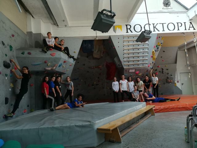 Girlspower in der BoulderhalleAm 9.11. begaben sich die Schülerinnen der 4b und 4d in die Kletterhalle "Rocktopia" in Mödling. Mit viel Spaß, Begeisterung, Kraft, Ausdauer und Anfeuern durch MitschülerInnen meisterten die Mädls die verschiedenen Schwierigkeitsstufen an den Boulderwänden.