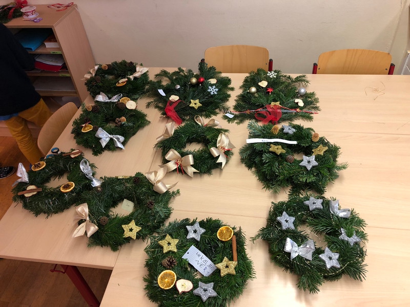 Pünktlich vor dem ersten Adventwochende gestalteten die SchülerInnen der Klasse 1a mithilfe ihrer Lehrerinnen Fr. Hackl und Fr. Egelkraut Adventkränze und Türschmuck. Die Kinder waren sehr motiviert und die Freude war groß!
