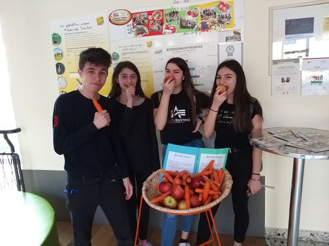 Gesunde Schule beginnt mit gesunder Ernährung, angenehmem Schulklima und Freude am Lernen und Leben. Gesunde Schule ist farbenfroh, vital, frisch und munter. Frisches Obst und Gemüse genießen die SchülerInnen täglich miteinander an der Schule!