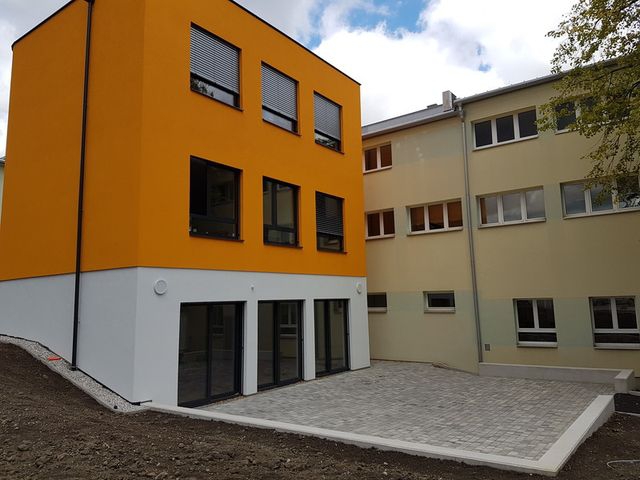 September: Nachdem im Juni quasi alles still zu stehen schien, weil hauptsächlich Innenarbeiten im Neubau gemacht werden konnten und der Durchbruch auf den Start der Sommerferien wartete, ist jetzt nach diesen natürlich ein Riesenfortschritt zu sehen. Die Fassade ist nahezu fertig, die Innenräume auch. Einige konnten sogar schon in Betrieb genommen werden. So ist unsere 'neue' 1c schon in ihr schönes Klassenzimmer eingezogen. Fieberhaft wird am Rest gearbeitet, denn schon Ende Oktober soll offizeill alles fertig sein!
