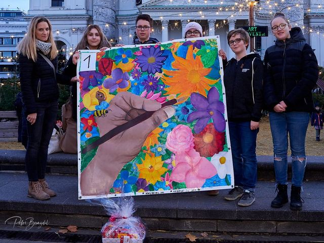 Die 3C-Kreativklasse der NMS Brunn am Gebirge nahm im Rahmen des Weihnachtsmarktes am Wiener Karlsplatz am Schulprojekt von "divina art" zum Thema "Flowerpower" teil und belegte den großartigen dritten Platz. Die Kinder durften gemeinsam mit ihrer Klassenvorständin einen tollen Preis entgegennehmen und freuten sich sehr.Unter Anlehnung an die Künstlerin Georgia O'Keeffe verwirklichten die 23 begeisterten Schüler und Schülerinnen ihre kreativen Ideen auf einer riesigen Plakatleinwand. Das farbenfrohe Bild schmückt schon bald unsere Schulaula.