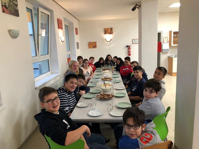 Um gestärkt in den Schulalltag zu starten, ist ein ausgewogenes und gesundes Frühstück essentiell. Am Dienstag, den 12.11.2019, machten sich die Schülerinnen und Schüler der 3D in der Schulküche an die Arbeit und verköstigten sich gegenseitig mit selbstgemachtem Müsli, Brot und Aufstrichen. Natürlich wurde ein wenig mehr zubereitet, als die Kinder essen konnten, und somit durften auch Frau Dundalek und Herr Jambrich in den Genuss kommen, zu probieren. Alle waren begeistert!