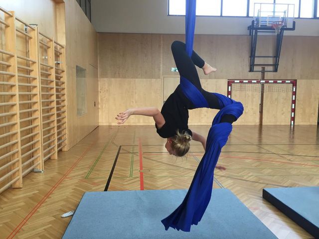 Im Sportunterricht der 3bd gab es wieder eine neue Attraktion zum Ausprobieren. Fr. Mortinger hat sich vom Elternverein Vertikaltücher gewünscht - und bekommen. Diese langen Tücher hängen von der Decke und lassen sich ganz unterschiedlich nutzen. Selbst unsere sportliche Frau Direktor ließ sich davon überzeugen, die Tücher zu testen. Dass es allen großen Spaß machte, ist nicht zu übersehen.