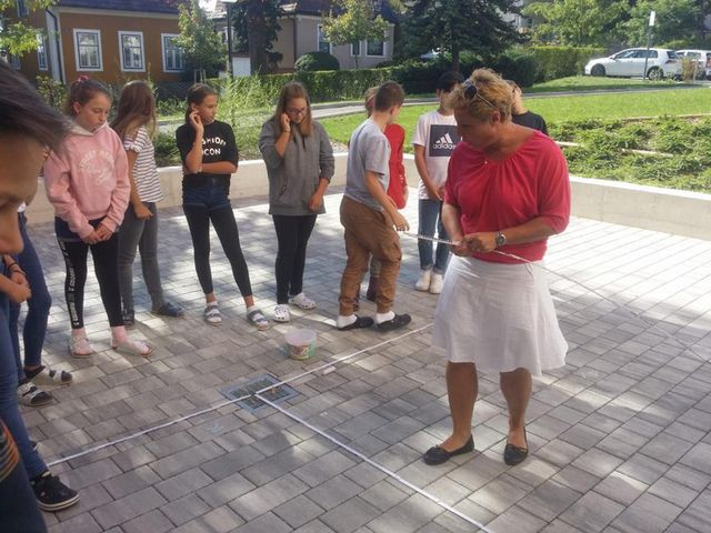 Bei der Erarbeitung der rationalen Zahlen war die 3b unter der Anleitung von Frau Mortinger wieder in ihrem Element. Das schöne Herbstwetter wurde genutzt, um draußen vor der Gartenklasse das erweiterte Koordinatensystem gründlich zu erforschen.