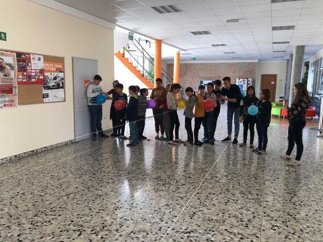 In der letzten Unterrichtsstunde in science beschäftigten sich die Schülerinnen und Schüler der 1b mit dem Prinzip des Rückstoßes. Dabei traten die Kinder gruppenweise gegeneinander an, indem sie eine Luftballonrakete auf einer Schnur von einer Seite auf die andere schossen.