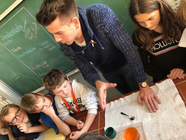 5. Herr Müllner erklärte den Kindern, dass die Gewichtskraft des verdrängten Wassers gleich der Auftriebskraft ist.
