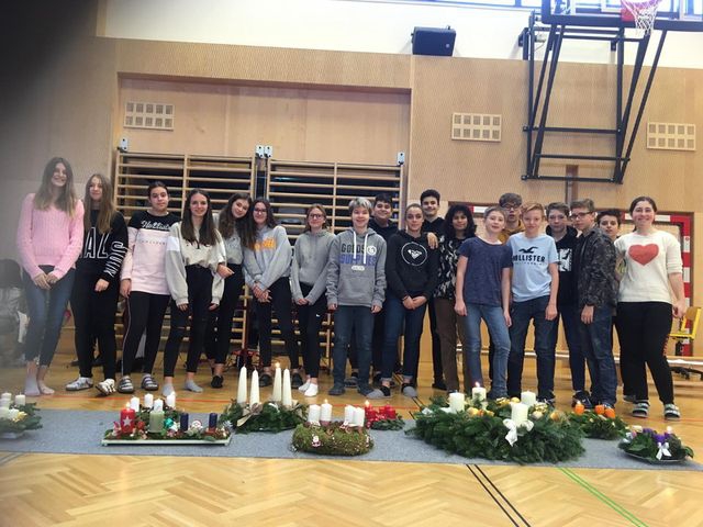 Pünktlich zum ersten Adventsonntag gab es im Turnsaal eine adventliche Messe, wo alle Klassen ihre Adventkränze zur Weihe brachten. Untermalt von ein paar netten Rollenspielen und einigen musikalischen Darbietungen war die Weihe sehr festlich und stimmte damit den Advent entsprechend gemütlich ein.