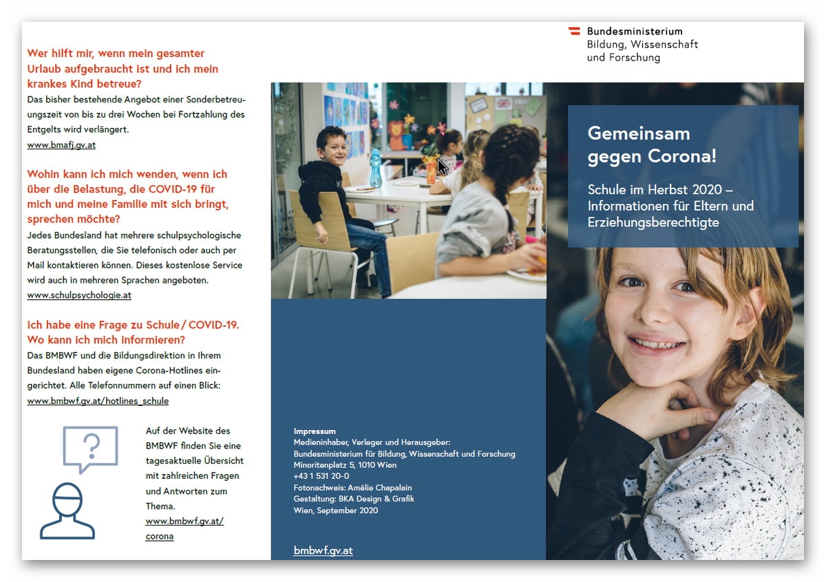 Das Bundesministerium hat diesen Elternbrief und Folder bereitgestellt, die einen ruhigen und reibungslosen Schulstart gewährleisten sollen.