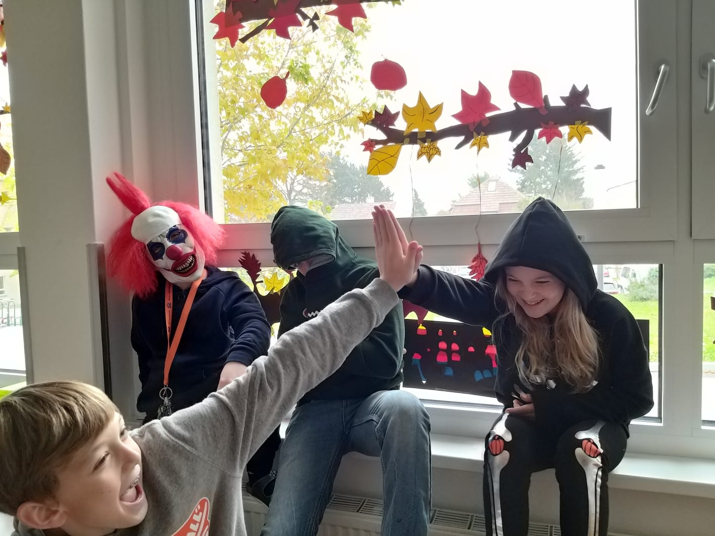 Zu Halloween wird die köstliche Ernte und das Ende des schönen Sommers gefeiert, aber auch die gruseligen Verkleidungen und die bunten Kürbisdekorationen. Die 2b gab sich besonders viel Mühe ihre Klasse zu dekorieren und die SchülerInnen brachten Äpfel für das lustige, gemeinschaftliche "Apple Dumping" Spiel.