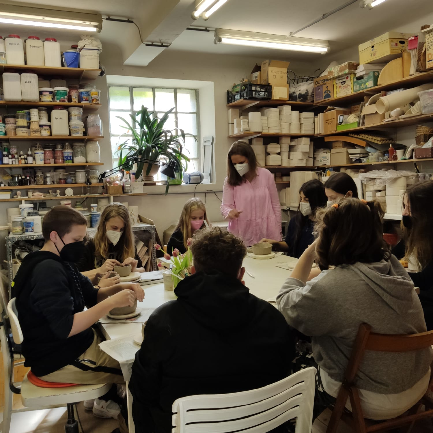 Nach mehrmaligem Verschieben wegen der Pandemie konnte der lang ersehnte Keramikworkshop nun endlich durchgeführt werden. Die 3b durfte in Vertretung der Gewinner-Klasse des divina-Art Kreativwettbewerbs vom Vorjahr (ehemalige 4c) die Künstlerin Renate Jindra-Metal in ihrem Atelier besuchen. Unter fachkundiger Anleitung entstanden wunderbare Werke aus Ton. Diese wurden anschließenden bemalt und nach dem Trocknen gebrannt.