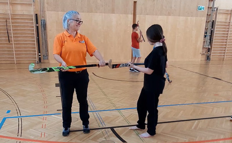Im Rahmen des Sportunterrichts konnten einige Klassen wieder eine Hockey-Trainingseinheit absolvieren. Unter Anleitung der Trainerin wurden die neuesten und die ganz alten Tricks des Spiels geübt. Alle hatten viel Spaß an der Stunde.