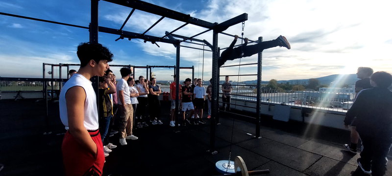 Anschließend wurde den SchülerInnen das Fitness-Studio vorgestellt. Das sehr gut ausgestattete Deck am Dach lud zum sofortigen Trainingsstart ein. Doch dann wurde es ein wenig kalt und die Schülergruppe verlegte das Training nach drinnen, wo sie fleißig weiter trainierten.