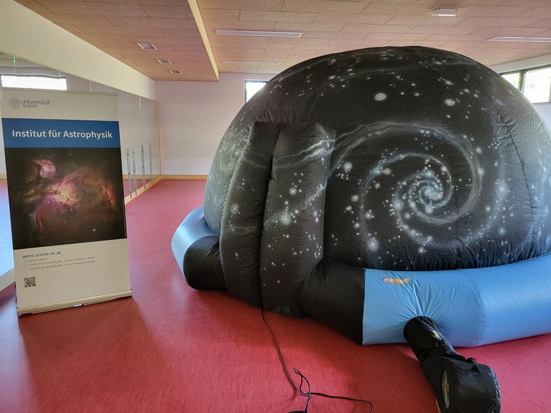 Die Universität Wien, genau gesagt das Institut für Astrophysik, bietet im Rahmen des Projekts "Astronomy to go" Besuche des mobilen Planetariums in Schulen an.