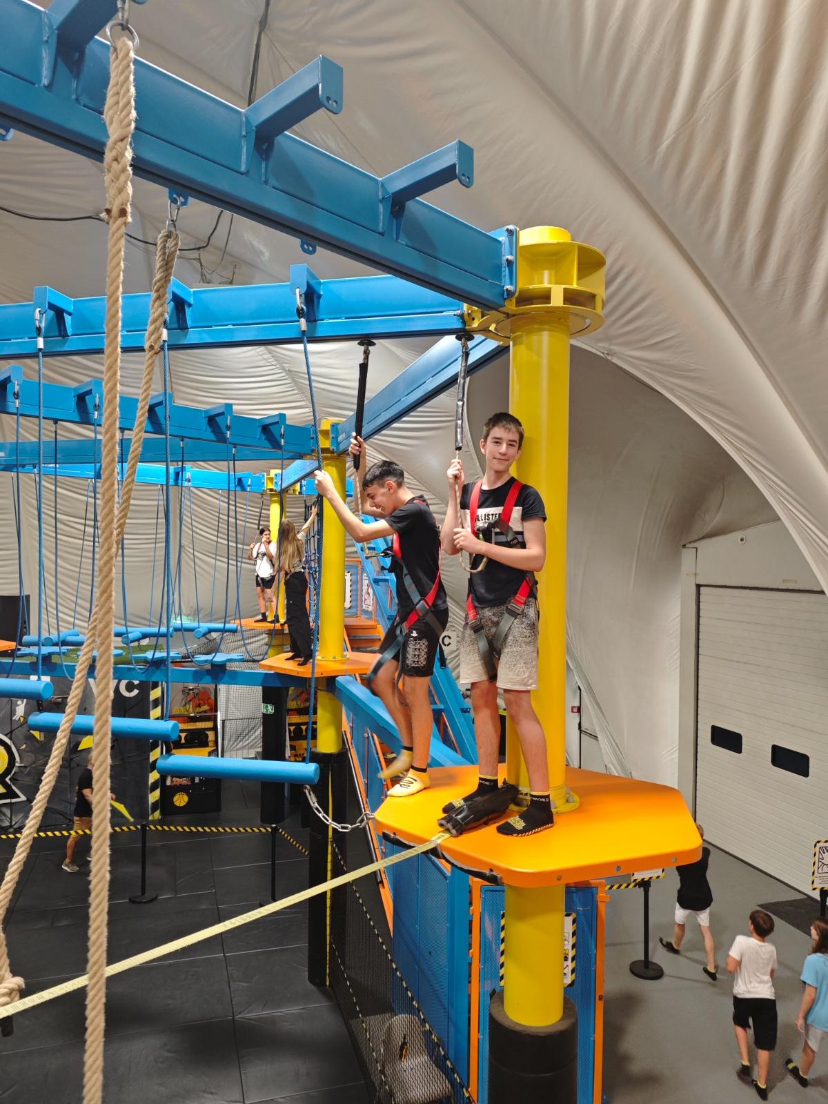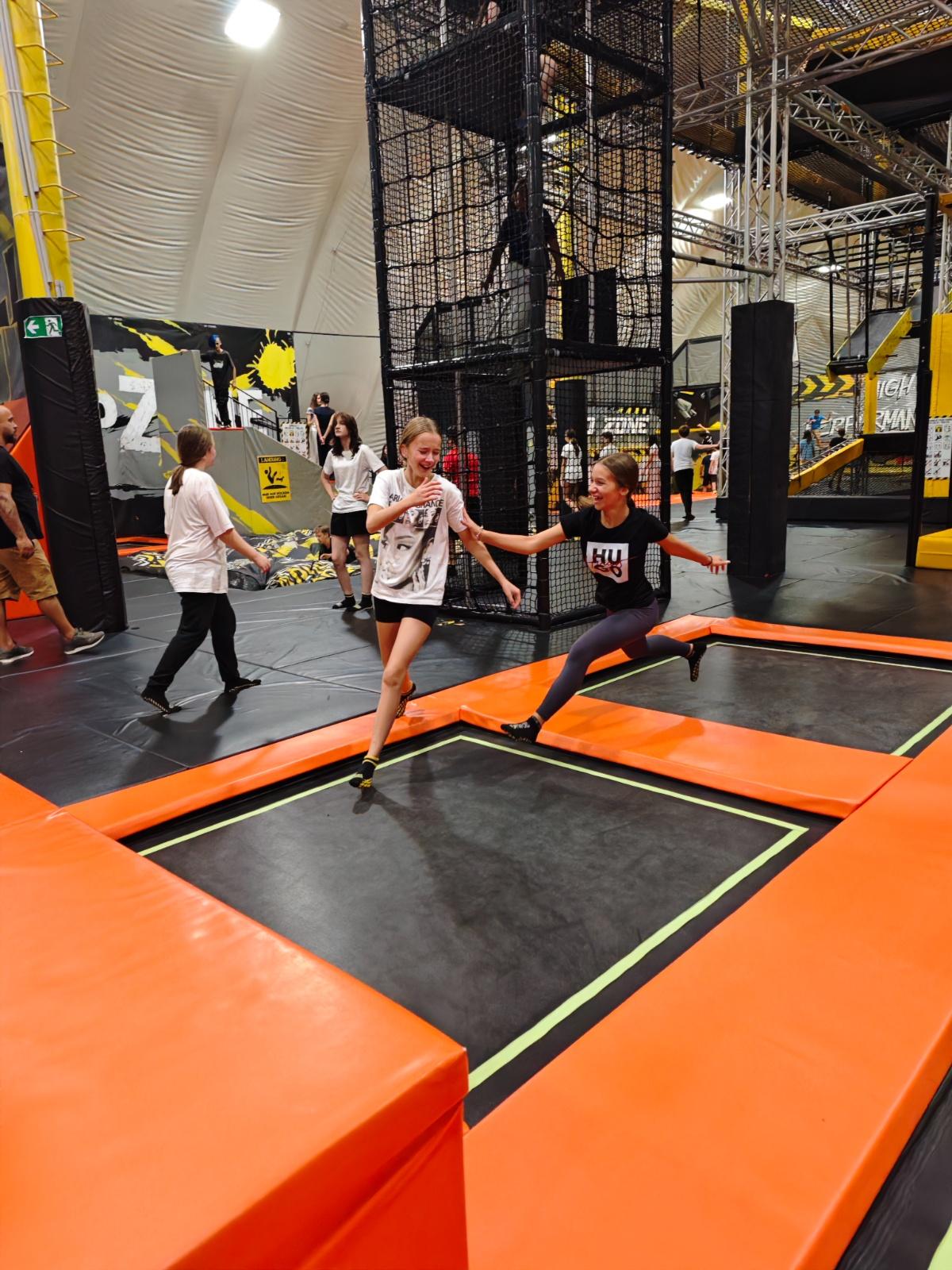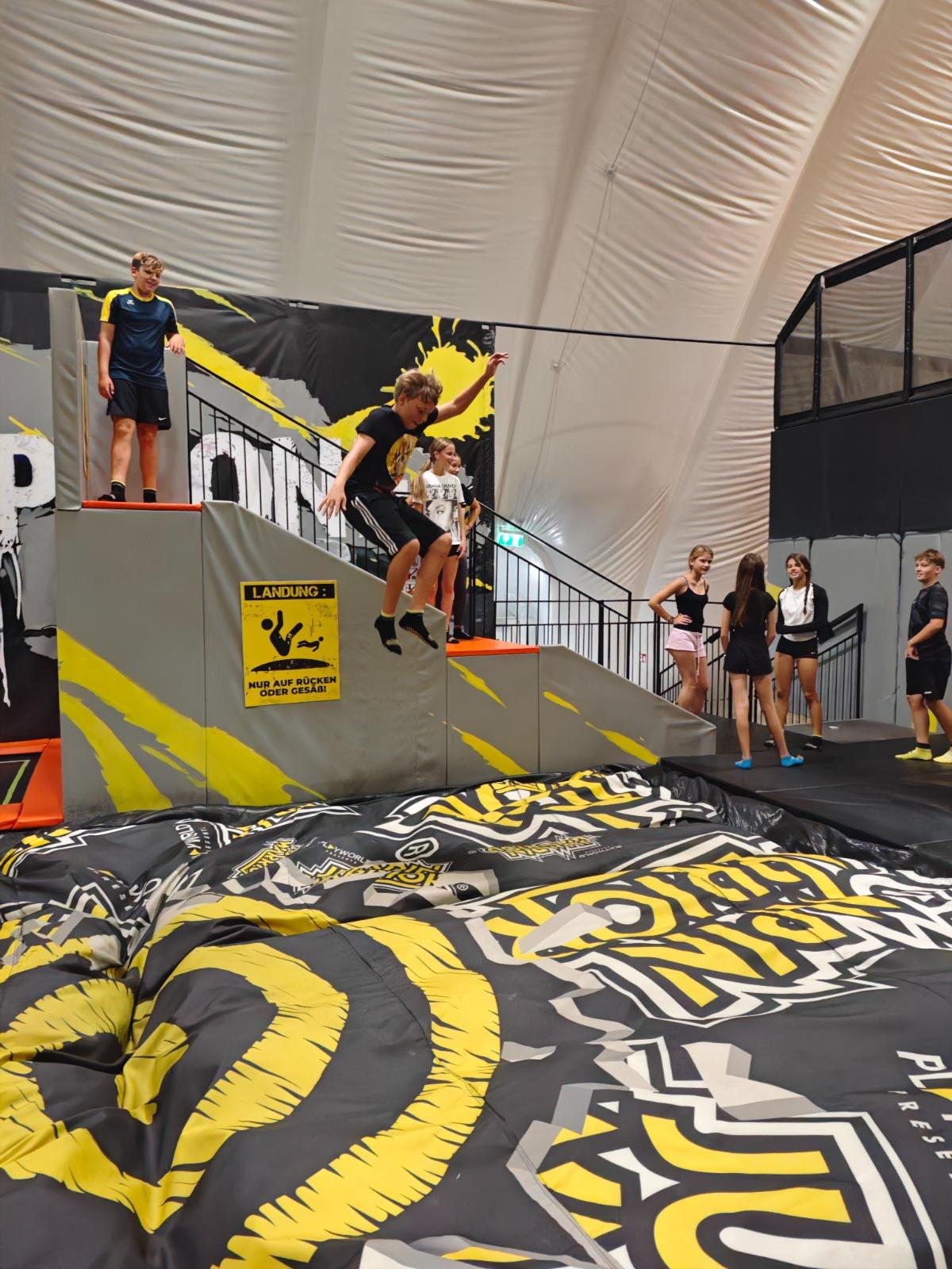 Dort konnten sich alle so richtig austoben – ob beim Hüpfen auf den zahlreichen Trampolinen, beim Balancieren im Klettergarten oder beim Bewältigen des spannenden Warrior-Parcours. Die Freude und Begeisterung waren groß, und die Klassen konnten gleich zu Beginn des Schuljahres Gemeinschaft, Spaß und Bewegung erleben.