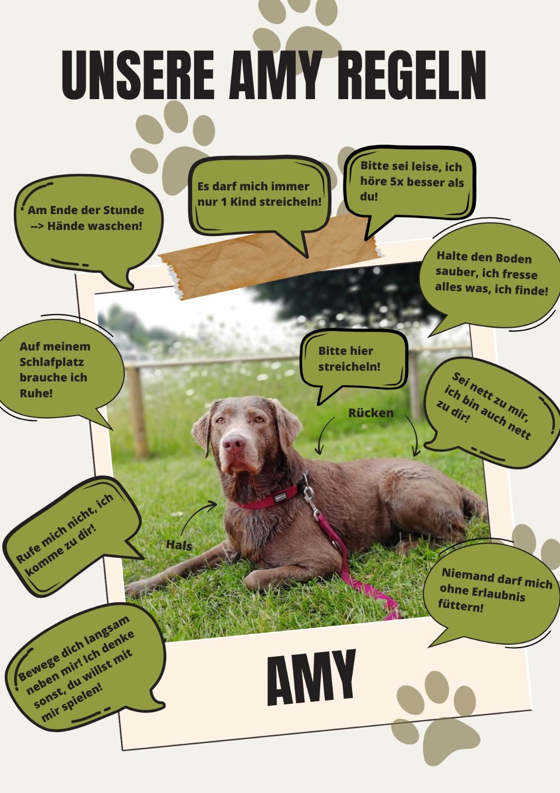 - Amys Anwesenheit wirkt beruhigend, die Kinder sind leiser und konzentrierter – schließlich wurde gemeinsam vereinbart, dass Hunde sehr empfindlich auf Lautstärke reagieren.