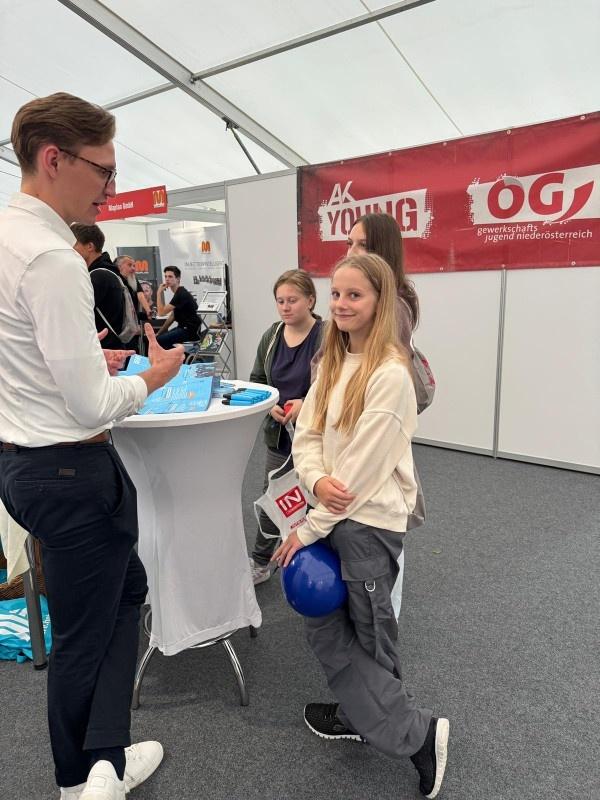An zahlreichen Infoständen von Fachgewerkschaften, Schulen und Betrieben aus der Region erhielten die Schüler:innen einen umfassenden Überblick über die vielfältigen Möglichkeiten nach der Pflichtschule. Auch Expert:innen der AK Niederösterreich standen für Fragen bereit.
