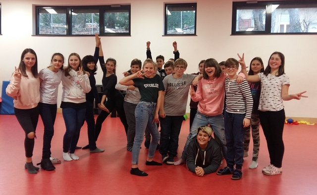 Am 2. Februar 2018 fand der sechsstündige Theaterworkshop mit Julia Bruckner vom Verein Showmotions für die 2b im Spiegelsaal zum Thema "szenisches Inszenieren" statt. Stop and Go Spiele, Übungen zur Gruppendynamik, Konzentration und Bewegungen führten hin zum selbstständigen Entwickeln von Statuen, Bildern und szenischen Kurzsequenzen, die schließlich erprobt und vor der Klasse im Zuge einer Aufführung präsentiert wurden.